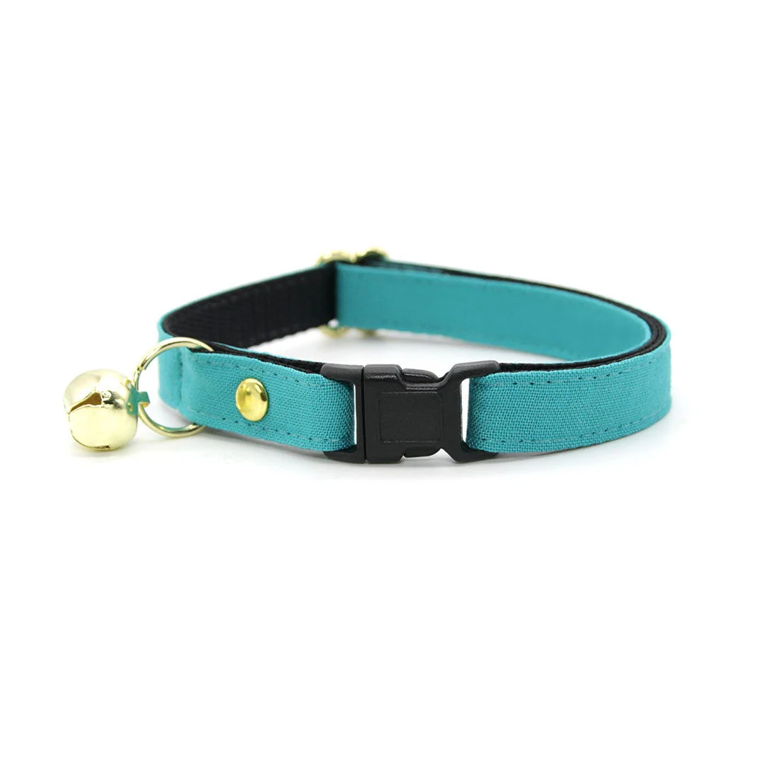 Cat Collar + Flower Set - "Color Collection - Teal" - Solid Teal Cat Collar + Mint Felt Flower (Detachable) / Wedding