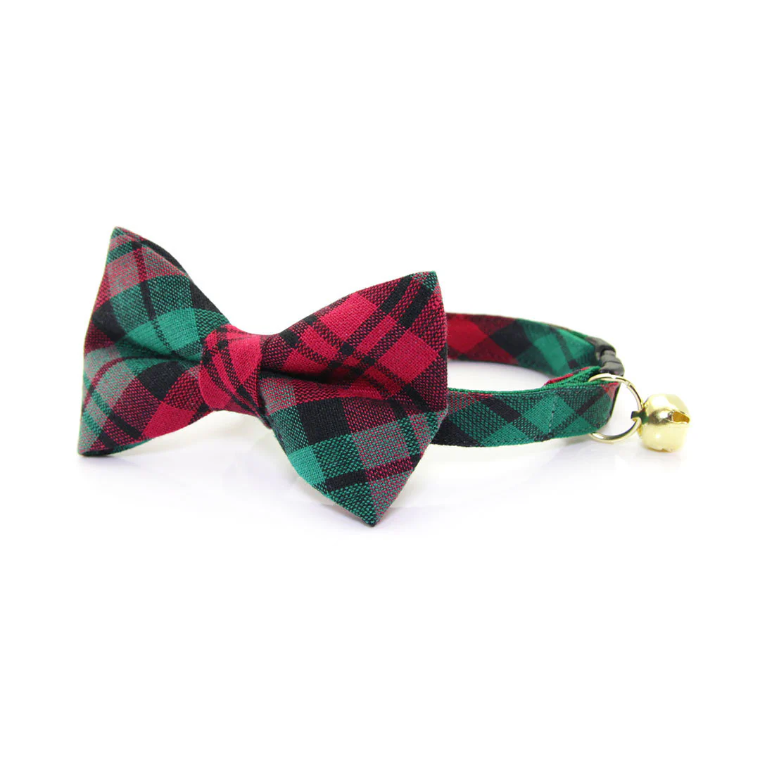 Holiday Cat Collar - "Fireside" - Red & Green Plaid Cat Collar - Breakaway Buckle or Non-Breakaway / Cat, Kitten + Small Dog Sizes