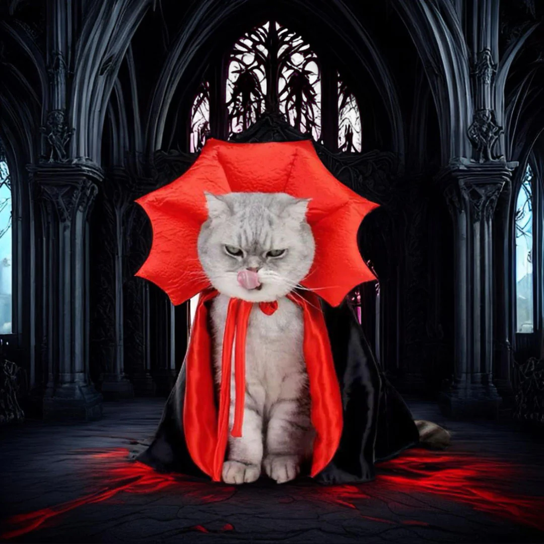 - Transform your kitty or pup into a spine-chilling sensation this Halloween with our Pet Dracula Costume! This fang-tastic vampire-themed costume is designed for cats and small dogs. Warning: Your friends and family will not be prepared for the cuteness overload in store, once you blitz them with all the pics of your adorable miniature vampire.